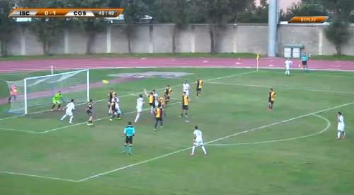 Cosenza in vantaggio al “Mazzella” di Ischia alla fine del primo tempo. Proprio in pieno recupero i Lupi sono andati in gol con un preciso colpo di testa di Tedeschi sugli sviluppi di un calcio d’angolo di Arrigoni.