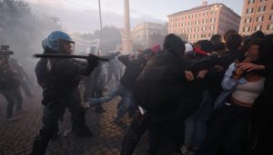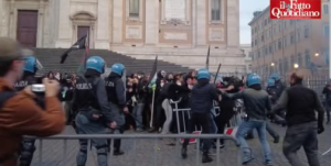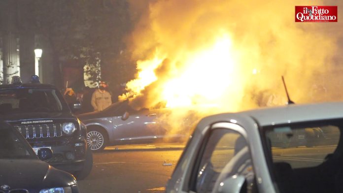 Al calar del sole, dall’oceanico corteo di Roma si stacca un gruppo di alcune centinaia di incappucciati che hanno ingaggiato una guerriglia urbana per le vie dell’Esquilino, piazza Santa Maria Maggiore, via Merulana e piazza Vittorio terminata con scontri, barricate, cassonetti in fiamme e anche un’auto civetta della digos incendiata tra il tripudio generale… Le forze dell’ordine hanno a più riprese utilizzato lacrimogeni e idranti per disperdere i manifestanti che lanciavano verso di loro bottiglie di vetro e petardi. Sono 262 gli identificati: rischiano di essere denunciati per danneggiamento, adunata sediziosa e resistenza a pubblico ufficiale. Una dozzina al momento i denunciati per gli stessi reati. Tre i manifestanti arrestati.