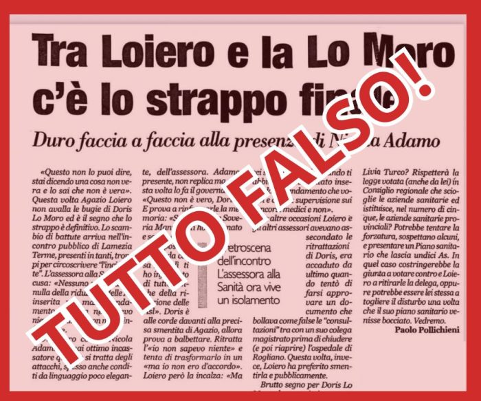 Ma entriamo nei dettagli della polemica, chiaramente agitata da quello che rimane del centrodestra dopo la figuraccia del primo turno. Doris Lo Moro sostiene che l’accorpamento dell’ASL di Lamezia Terme a quella di Catanzaro fu un blitz ideato da Nicola Adamo e da Leopoldo Chieffallo: “Io, come più volte dichiarato, non ho né proposto, né accettato l’emendamento”.