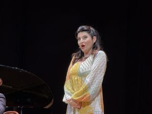 Da qui prende forma una piccola antologia dell’opera buffa, un percorso che alterna virtuosismo e gioco scenico. Ogni brano è accolto da applausi generosi, segno di un pubblico coinvolto e divertito. Elio sorprende con una “Madamina, il catalogo è questo” da Don Giovanni, interpretata con un gusto teatrale che strappa risate senza tradire l’eleganza mozartiana. Subito dopo, Scilla Cristiano esegue un “Batti, batti bel Masetto” luminoso e controllato, capace di restituire tutta la freschezza del personaggio di Zerlina.