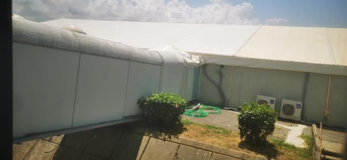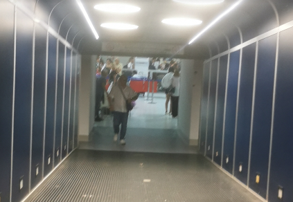 Passato il controllo dei documenti e dei bagagli, si arriva ai gate di partenza e qui ti accorgi che dove una volta c’erano tre gate di imbarco adesso hanno smobilitato il tutto piazzando due tunnel che portano giù nell’inferno. Eh sì, perché il tunnel porta ai nuovi gate di partenza che sono collocati in una tensostruttura collocata ai margini dell’area di parcheggio dei veicoli.