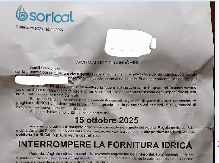 in questi giorni l’hinterland cosentino è letteralmente invaso da queste lettere che ogni condomino seppur avesse anche pagato, si ritrova nella cassetta della posta.