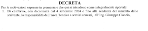 Qui sotto, c’è la determina di nomina a responsabile di Ciancio dopo appena… un giorno dall’assunzione. Una carriera fulminante ancora più che… fulminea…