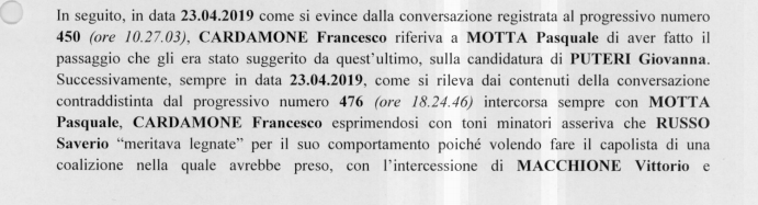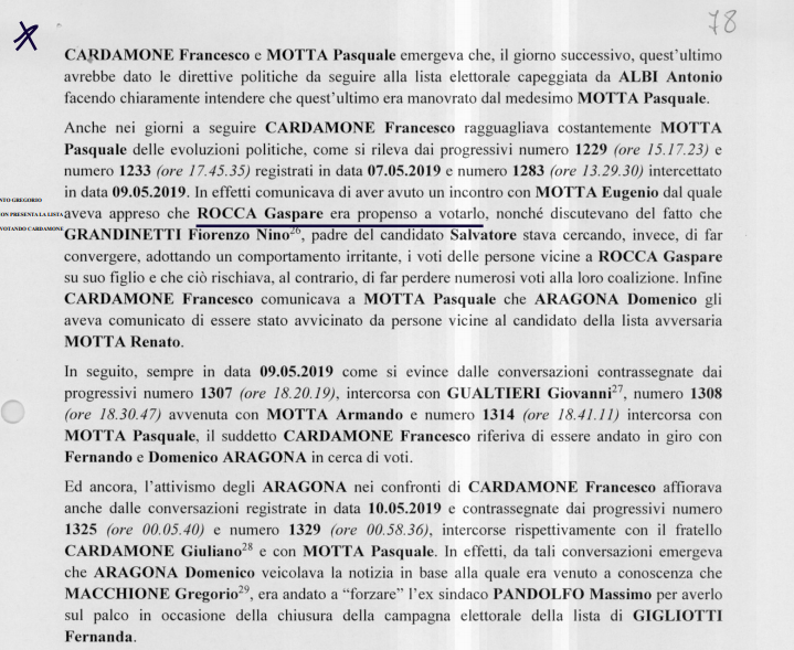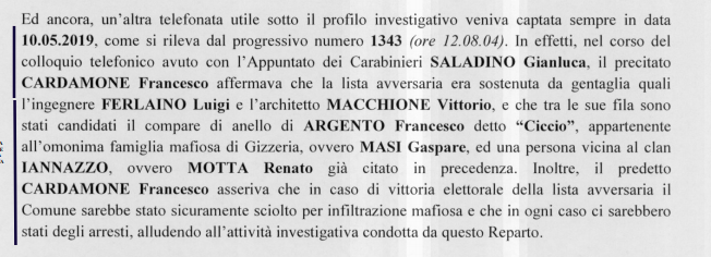 Cardamone Francesco, Appuntato Scelto dei Carabinieri, imparentato con la cosca Bagalà e vicesindaco del Comune di Nocera Terinese (CZ), si era impegnato a “risolvere tutte le questioni di Gregorio” una volta eletto. Così è stato!