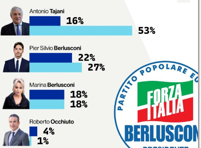 Il quadro muta solo osservando il campione degli elettori di Forza Italia. In questo segmento emerge con chiarezza la centralità di Antonio Tajani, che ottiene il 53% delle preferenze, distanziando nettamente Pier Silvio Berlusconi (27%) e Marina Berlusconi (18%). La percentuale di indecisi si riduce quasi a zero, attestandosi all’1%. Anche in questo contesto, la figura di Occhiuto rimane defilata rispetto agli altri “competitors”
