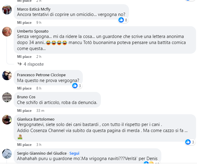 Di seguito, una selezione degli insulti e delle proteste dei cosentini pubblicati peraltro sugli stessi canali dei media dell’editore-nano…