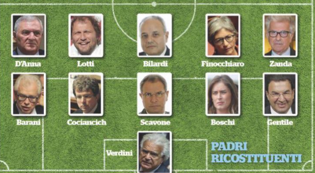 “Anziché preoccuparsi degli italiani – si legge sul blog di Grillo – da mesi il Governo insieme a Verdini (uomo plurindagato e rinviato a giudizio per reati come concorso in corruzione, truffa, bancarotta fraudolenta, appalti e finanziamenti illeciti, ecc..) è alle prese con la riforma costituzionale. Tra i padri costituenti che la scrissero ci sono Pertini, Togliatti, Nenni, Croce, Parri, Calamandrei, Iotti. Oggi, invece, chi sta riscrivendo la nostra Costituzione sono Renzi e la Boschi con i voti determinanti di Verdini, Azzollini, Formigoni, Bilardi, Conti, Scavoni, Caridi, Aiello, Gentile. Tutti o condannati o indagati o coinvolti in inchieste per reati come corruzione, associazione a delinquere, voto di scambio politico, frodi, finanziamenti illeciti, ecc. E c’è anche Barani che oltre ad essere stato condannato dalla Corte dei Conti si è rilevato anche pubblicamente sessista! Dentro la riforma costituzionale c’è la famosa riforma del Senato. Attenzione, riforma e non abolizione (come vorrebbero far credere).