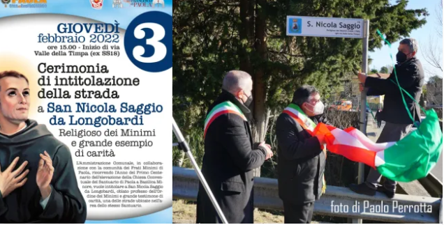 Magna fu la pompa con cui, lo scorso 3 Febbraio, autorità civili e religiose presero parte all’intestazione di una via della Città di Paola a San Nicola Saggio.