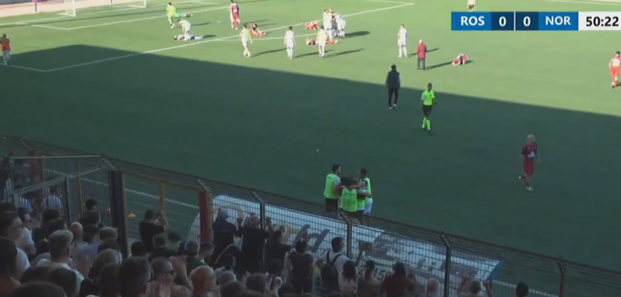 Non ce l’ha fatta la Rossanese a battere la Real Normanna per volare in finale nei playoff nazionali di Eccellenza. La sfida tra le due squadre allo “Stefano Rizzo” si è chiusa sullo 0-0 e così i campani, che avevano vinto 2-1 la gara di andata, si qualificano per le finali. I ragazzi rossoblù escono comunque a testa alta dal confronto e tra gli applausi dei circa 4000 tifosi che li hanno incitati fino all’ultimo secondo per sperare nella vittoria. E’ stata una partita piena di emozioni, con occasioni da una parte e dall’altra. La Rossanese è andata vicina al gol al 19′ del primo tempo con un gran tiro di Novello deviato in extremis da Merola in angolo. Gli ospiti hanno replicato al 25′ quando Panza ha fermato all’ultimo istante Orefice lanciato a rete da Esposito. Nella ripresa, la Real Normanna ha tenuto a lungo il pallino del gioco e al 58′ Sieno, praticamente a porta vuota, ha calciato clamorosamente a lato. La Rossanese ha reagito e nel finale, trascinata da un bravissimo Riconosciuto, ha sfiorato due volte il gol della vittoria proprio grazie a due iniziative del centrocampista cosentino. Al 75′ il suo gran tiro dai 30 metri è stato deviato in angolo da Merola mentre all’87’ il portiere non sarebbe arrivato sulla conclusione di Riconosciuto ma la palla è uscita a lato di un soffio. Per la Rossanese la stagione finisce qui e per una neopromossa centrale il 2° posto e la semifinale playoff rappresenta un risultato straordinario, del quale hanno grandi meriti oltre ai ragazzi anche il tecnico Aloisi e la società. E con questo grande pubblico per la prossima stagione si può davvero pensare alla Serie D.