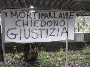 Nonostante le ruspe abbiano individuato attorno allo stabilimento della Marlane, rifiuti tossici di ogni genere, nonostante gli accertamenti venuti fuori anche dal primo processo sulla Marlane che portò all’assoluzione degli imputati, nonostante le tante testimonianze di operai e periti di parte oltre che dallo stesso Procuratore del Tribunale di Paola, Bruno Giordano, vedo dei fantasmi aggirarsi per tutto il perimetro degli scavi. Riesco a vederli questi fantasmi, perché è da oltre quindici anni che scrivo di questa fabbrica, degli operai morti, dei loro nomi e cognomi, delle loro famiglie, dei loro figli lasciati senza padre né madre. Li vedo perchè sono stato al cimitero di Praia con le loro vedove ed i mariti delle operaie decedute. Nomi oramai dimenticati, che si vorrebbe seppelliti nell’oblio, ma che sono vivi e vegeti negli operai superstiti e nella cattiva coscienza di chi ne ha provocato la loro morte.