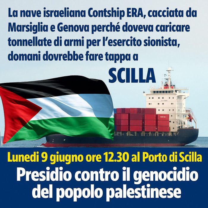 Ma anche se la nave dovesse restare alla fonda, non possiamo accettare che la bellezza e la dignità del nostro territorio vengano oltraggiate dalla presenza di un’imbarcazione impegnata nel trasporto di armi per lo sterminio di un popolo. Per questo saremo in presidio dalle 12.30 al Porto di Scilla.