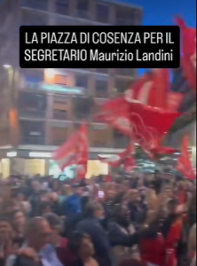 Il grande abbraccio della piazza di Cosenza e della Calabria intera per il segretario generale della CGIL 𝐌𝐚𝐮𝐫𝐢𝐳𝐢𝐨 𝐋𝐚𝐧𝐝𝐢𝐧𝐢 che ha parlato, coinvolgendo tutte e tutti, di diritti e democrazia. Del perché è giusto votare 5 sì l’8 e il 9 giugno.