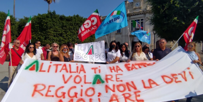 Scendono in piazza i lavoratori di Alitalia dell’aeroporto di Reggio Calabria. Lo scalo del Tito Minniti presenta grandi dubbi e molte ombre riguardo il prossimo futuro dei voli in partenza dallo scalo reggino, mettendo così in seria difficoltà i posti di lavoro del personale. In cerca di risposte, delucidazioni e una chiara visione su ciò che accadrà, i sindacati e gli impiegati coinvolti si sono ritrovati dalle 10 di questa mattina in piazza Italia, di fronte alla prefettura.