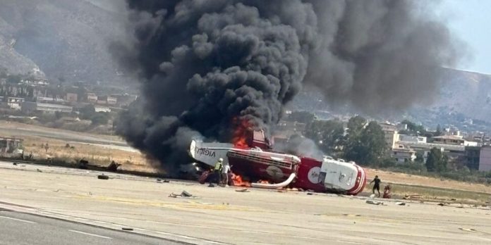 Reggio. Elicottero in fiamme precipita all’aeroporto, salvi i piloti