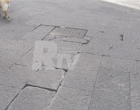 Uno dei punti più problematici si trova paradossalmente davanti la sede della Questura. Qui la pavimentazione risulta particolarmente irregolare e usurata, con lastre che sporgono pericolosamente. Una zona che dovrebbe essere simbolo di decoro e sicurezza cittadina offre invece uno spettacolo di degrado e incuria.