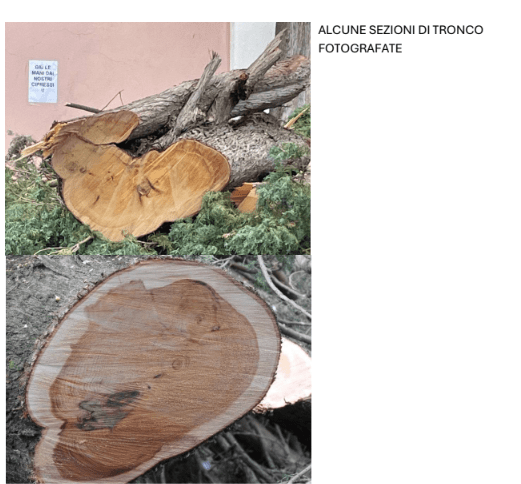 Tuttavia, pur a fronte di tali valutazioni, non è stato possibile avviare alcun confronto con il parroco, nonostante una diffida formale già inviata dal rappresentante legale del Comitato Popolare pro riapertura della chiesa (chiusa dal 17 novembre 2023 per mancata manutenzione) al fine di proporre soluzioni alternative di messa in sicurezza che evitassero l’abbattimento. Durante le operazioni di taglio è stato possibile constatare come ogni sezione dei due cipressi non presentasse evidenti cavità, segni di erosione, marciume o compromissioni strutturali tali da giustificarne l’immediato taglio. Si trattava di alberi con un’età stimata di circa 150 anni, piantati nel 1890 vicino le tombe dei baroni di Arcavacata, veri e propri elementi monumentali, parte integrante della memoria storica del luogo sacro e dell’ecosistema circostante.