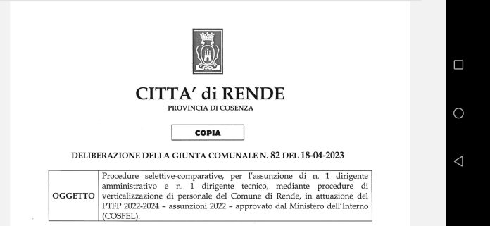 facendo seguito al tuo articolo del 10/08/2022 “A Rende tutto è possibile: ecco l’ultima furbata per assumere i due dirigenti della paranza” (https://www.iacchite.blog/a-rende-tutto-e-possibile-ecco-lultima-furbata-per-assumere-i-due-dirigenti-della-paranza/), nel quale veniva evidenziato che era stato approvato il regolamento per le progressioni verticali, con il quale era prevista la verticalizzazione dei dirigenti, volevo portare alla tua attenzione e a quella dei tuoi lettori che Marcello Mazzetta, nonostante le inchieste, gli arresti domiciliari, i divieti di dimora, la Commissione di accesso Antimafia, continua a perpetrare i suoi oscuri progetti: in particolare quello di piazzare i suoi uomini/donne in pianta stabile presso il Municipio rendese.