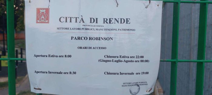 Vi segnalo quanto appena accaduto al Parco Robinson di Rende.
