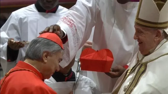 Don Mimmo Battaglia è stato “creato” cardinale. Alle 16.55 l’arcivescovo di Napoli si inginocchia davanti a Papa Francesco nella basilica di San Pietro a Roma. Riceve la berretta cardinalizia, con l’anello. È l’ultimo dei 21 nuovi cardinali a sfilare davanti al pontefice nel corso del concistoro pubblico.