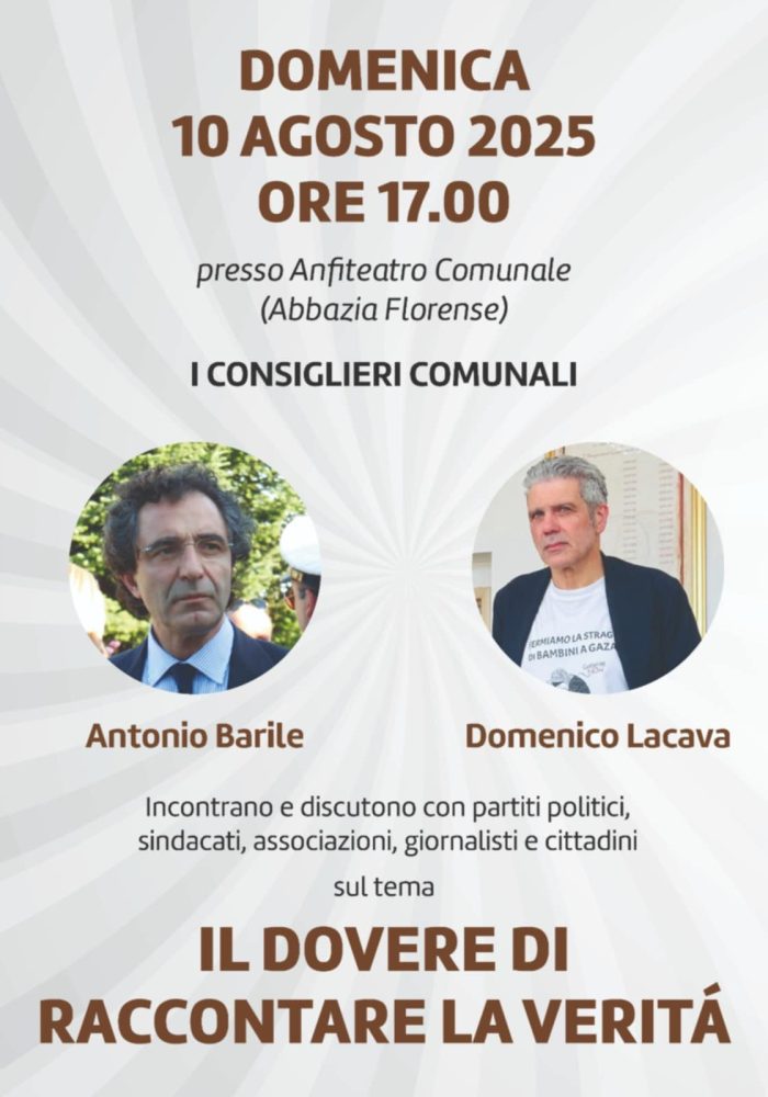 È previsto per domenica 10 agosto, alle ore 17.00, l’incontro tra i consiglieri di opposizione, Antonio Barile e Domenico Lacava, del comune di San Giovanni in Fiore, a guida Rosaria Succurro.