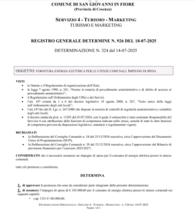 Ieri l’arcano è stato definitivamente svelato: il braccio armato della coppia Alessandro Martire ha pubblicato sull’albo pretorio la determina n. 324 del 14 luglio 2025 per un importo di 343 mila euro per pagare le utenze elettriche. Evidentemente non pagavano le bollette chissà da quanto tempo per arrivare ad un importo simile.
