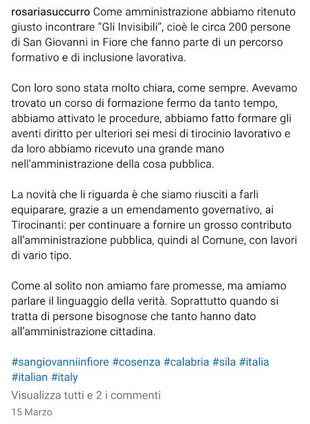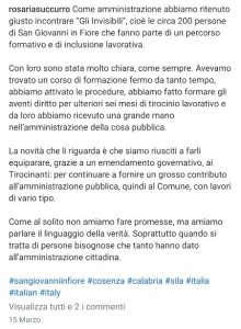 Poi invece tutti sanno che a San Giovanni in Fiore, feudo privato della coppia reale Succurro-Ambrogio, si stravolge quotidianamente la realtà. E così basta solo andare indietro nel tempo per ricordare che per la regina e per il suo consorte inserire il gruppo degli “invisibili” in questo percorso veniva celebrato come una grande conquista (marzo 2024, era il periodo di San Patrizio e l’alcol evidentemente aveva dato alla testa…).