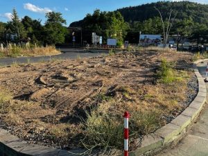 Oggi, quello che era un punto di orgoglio stradale-urbano, si presenta come uno spazio in via di disfacimento burocraticamente abbandonato. Trascurato. Sicuramente sopraffatto dall’avvenuta desertificazione e comunque dall’indifferenza o dalla lungaggine tecnico-burocratica di chi ha la gestione e le competenze. L’erba incolta, la polvere, lo sterramento devastante, i cespugli rinsecchiti e l’assenza totale di manutenzione sono il segno visibile di una ferita più profonda: quella della rinuncia collettiva alla bellezza, all’attenzione pubblica, alla responsabilità civile e culturale di un popolo assopito.