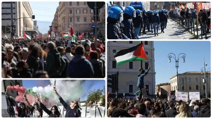 Almeno un milione (ma il numero è destinato ad aumentare) di manifestanti nelle oltre 100 piazze dello sciopero generale di oggi proclamato dalla Cgil, dall’Usb e dai sindacati di base a sostegno della causa palestinese e contro il governo Meloni che ancora regge il sacco a Israele. 300 mila soltanto a Roma, 100 mila a Milano, Bologna e Firenze, 50 mila a Napoli e numeri altissimi anche in tante altre città. Inevitabile qualche scontro e qualche momento di tensione ma niente di realmente preoccupante: nessuno si è fatto male e nella stragrande maggioranza delle città i cortei sono stati pacifici. “Le piazze sono state strapiene. Questa reazione umanitaria di fraternità e solidarietà è una cosa di cui bisognerebbe andare fieri. Dimostra l’umanità e la volontà di persone per bene che vogliono fermare un genocidio e stanno facendo quello che i governi e gli Stati hanno fatto finta di non vedere o di cui addirittura sono complici”, ha detto il leader della Cgil, Maurizio Landini. AGGIORNAMENTO: DUE MILIONI IN PIAZZA AGGIORNAMENTO. CGIL, OLTRE DUE MILIONI IN PIAZZA