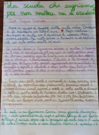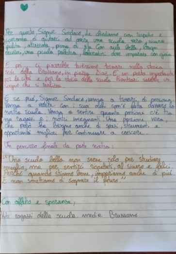 Le giro la lettera degli alunni della scuola media Bruzzano di Vibo Valentia affinché possa lei con il suo aiuto fare conoscere a tutti la verità.