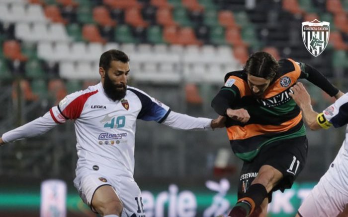 E dire che la giornata era cominciata sotto i peggiori auspici per il Venezia: al 12′ cross dalla sinistra di Ricci per Fiordilino che di testa colpisce il palo alla destra di Falcone. E’ il sedicesimo legno in stagione per il Venezia, che si dispera. Al 43′ gli arancioneroverdi passano: angolo di Aramu, torre di Svoboda e Ceccaroni segna ancora bissando la prodezza di Ferrara. Mentre il Cosenza prende l’ennesimo gol su calcio piazzato. All’8′ della ripresa strepitosa parata di Maenpaa su Ingrosso, che di testa costringe il portiere finlandese a un gran riflesso per togliere il pallone dall’angolino. E’ l’unico e solo momento di rabbia agonistica del Cosenza. La partita si accende, nel senso che il Venezia tira fuori gli artigli e i rossoblù si arrendono praticamente senza opporre resistenza: prima Aramu e poi Di Mariano vanno vicino al raddoppio: su quest’ultimo è bravissimo Falcone a neutralizzare il diagonale. Al 14′ l’inevitabile raddoppio: Maleh mette in mezzo per Crnigoj, che avanza fino al limite dell’area ed esplode un destro formidabile per il 2-0. Il Venezia non si accontenta e mette pure il punto esclamativo sulla partita: al 34′ Sebastiano Esposito indovina l’angolino giusto con un bellissimo calcio di punizione che non lascia scampo a Falcone, anche grazie a una deviazione. 3-0 e tutti a casa, per il Cosenza inizia un’altra settimana di passione che porterà ad una nuova trasferta, quella di Pisa.