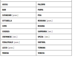 Queste le 20 squadre che parteciperanno al prossimo campionato di Serie B