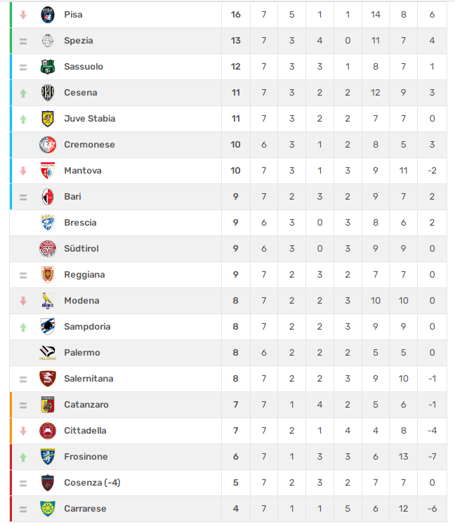 SERIE B – RISULTATI E MARCATORI 7^ GIORNATA