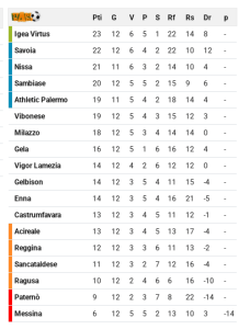 Rallentano le battistrada del Girone I della Serie D. La capolista Igea Virtus viene fermata sullo 0-0 sull’ostico campo del CastrumFavara ma resta al comando con un punto di margine sul Savoia, sconfitto 3-2 a Ragusa. Al terzo posto la Nissa a -2 mentre il Sambiase scivola al quarto posto a -3 dalla vetta dopo il pari casalingo contro l’Acireale. La squadra di Tony Lio le ha provate tutte per vincere ma Calabrò e Costanzo in particolare sono decisamente sfortunati e il risultato non si sblocca dallo 0-0 iniziale.