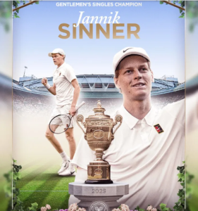 Oggi è il giorno che cambia la storia. È il giorno in cui Wimbledon, il giardino dei Re ai tinge di azzurro. Jannik Sinner è il primo italiano a vincere il torneo più desiderato, più ambito. Il torneo che cambia la vita di un tennista e lo mette in un’altra categoria. Jannik Sinner supera finalmente Carlos Alcaraz e lo fa nel posto giusto, sul Centre Court che negli ultimi due anni aveva visto trionfare lo spagnolo. Jannik vince 4-6 6-4 6-4 6- 4 in rimonta, dopo un primo set in cui tutto sembrava scritto. E invece è solo dei grandi la capacità di riscrivere la storia. E Jannik Sinner è sicuramente tra questi. Le braccia alzate, il sorriso, i colpi sull’erba. Le lacrime, è tutto vero.