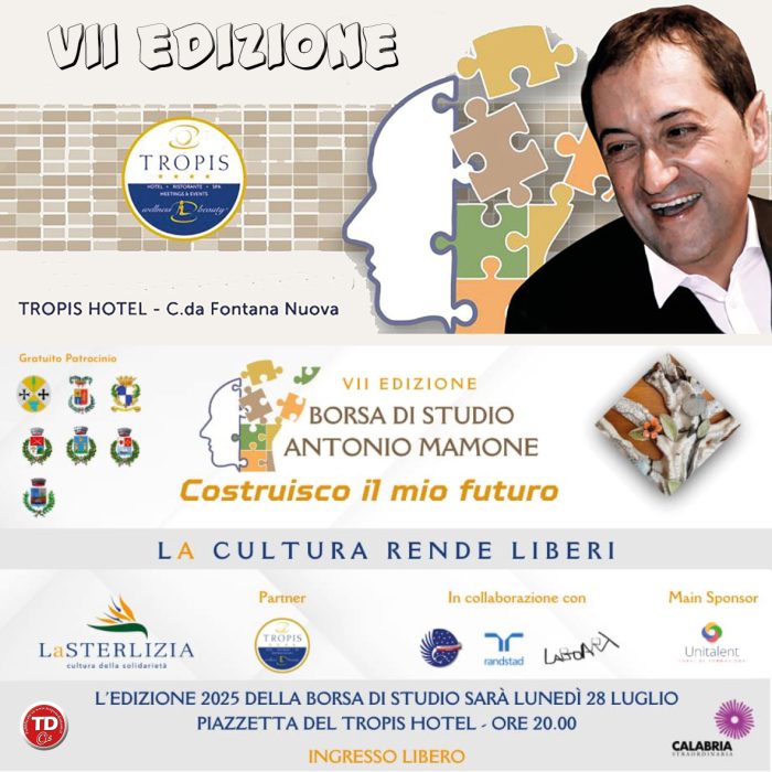 Tropea si prepara a vivere una serata all’insegna del talento e dell’impegno giovanile: stasera lunedì 28 luglio 2025, alle ore 20:00, la Piazzetta del Tropis Hotel ospiterà la settima edizione della Borsa di Studio Antonio Mamone, appuntamento ormai atteso e significativo per la città.