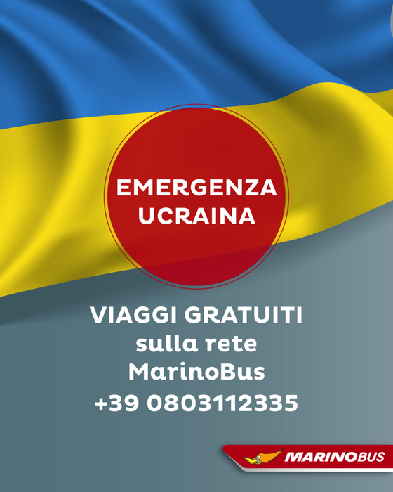 A chi è fornito di passaporto ucraino, MarinoBus offre gratuitamente la possibilità di viaggiare sui propri automezzi di linea nelle tratte a lunga percorrenza verso Puglia, Campania, Calabria e Basilicata da tutte le città del Centro-Nord Italia servite (Milano, Trieste, Trento, Udine). “Il servizio – dice l’azienda – permetterà così di rendere più semplici i ricongiungimenti dei profughi con i familiari che vivono in Italia o il raggiungimento di luoghi di ospitalità sicuri”.