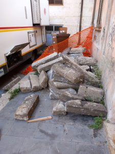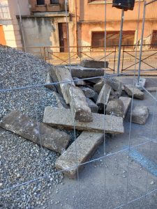 Ma la questione che maggiormente appassiona e per la quale tantissimi cittadini mi chiedono aggiornamenti, è la sorte delle migliaia di cordoli di granito serrese e pietra vulcanica di gran pregio prelevati dai cantieri di via del Gesù, piazza Luigi Razza, piazzetta del Lavoro, spiazzo Municipio, viale Affaccio, e poi caricate, nella stragrande maggioranza integre, e fatte scomparire. Credo che, oltre all’indiscutibile valore storico ed identitario, abbiano sul mercato un valore venale di centinaia di migliaia di euro, anche perché lavorate a mano da abili scalpellini locali e perché storicizzate, essendo trascorso un secolo dalla messa in posa.