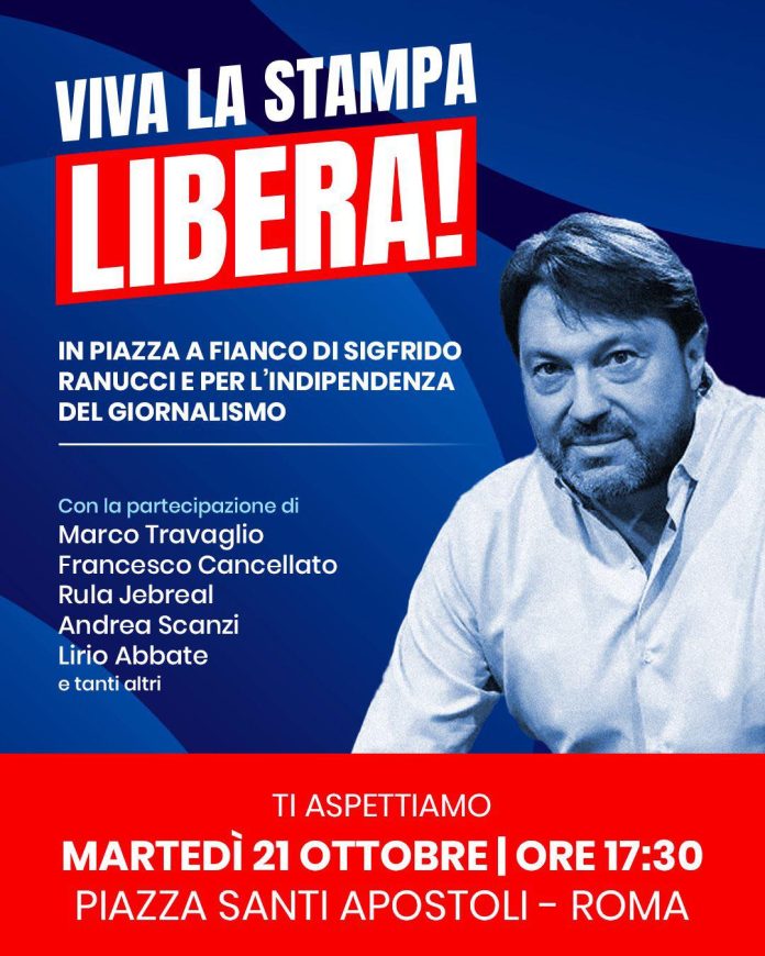 Difendere la libertà di stampa e l’indipendenza del giornalismo. Nel Paese europeo in cui la salute dell’informazione è più sotto attacco, come rivelano l’ultima classifica di Reporters sans frontières e il dossier di International Idea di settembre, l’auto incendiata a Sigfrido Ranucci diventa l’occasione per riflettere su intercettazioni, querele temerarie, minacce e denunce ai cronisti. E per scendere in piazza a difendere un giornalista, la sua famiglia e la stampa in generale. “Viva la stampa libera” è il titolo eloquente dell’occasione, lanciata per primo da Giuseppe Conte, e prevista per oggi martedì 21 ottobre alle 17.30 in piazza Santi Apostoli a Roma. Una manifestazione, promossa dal M5S, nata per dare sostegno al conduttore di Report, e diventata in breve una chiamata alla società civile per protestare contro gli attacchi all’indipendenza dei reporter.